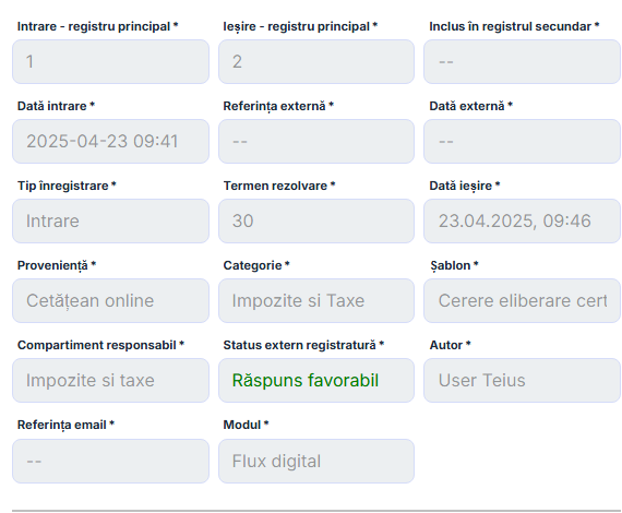 Prin digitalizarea completă a fluxurilor, instituțiile elimină formularele pe hârtie, timpul pierdut cu transmiterea manuală a documentelor și blocajele cauzate de lipsa vizibilității asupra stadiului în care se află o solicitare. Platforma permite trasabilitate completă - fiecare acțiune este înregistrată și poate fi urmărită în timp real, cu responsabil, dată, oră și observații.