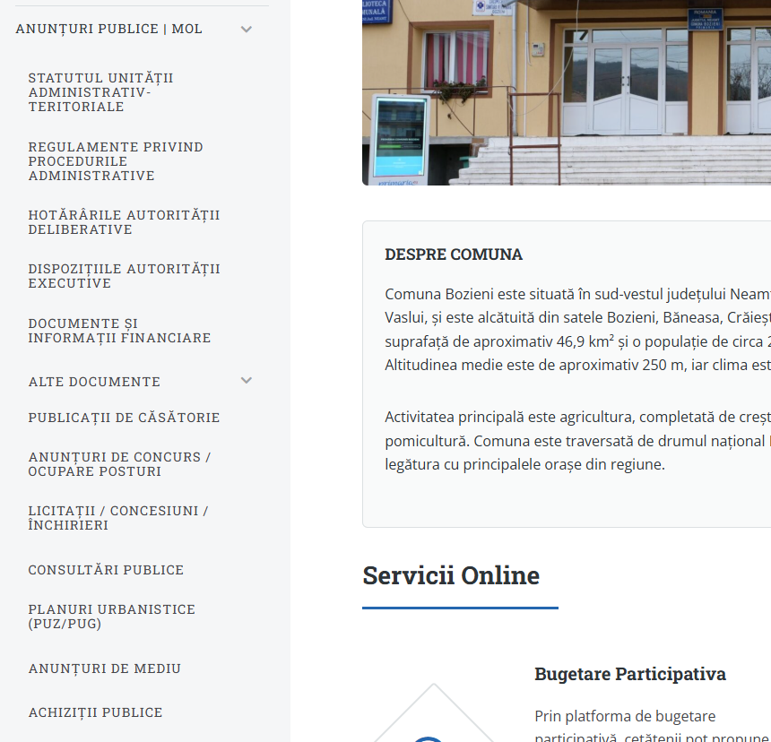 Primăria Online este o soluție digitală completă și modulară care transformă interacțiunea dintre cetățeni și administrația locală. Printr-o singură platformă, cetățenii pot accesa servicii precum: programări la ghișeu, transmitere cereri online, bugetare participativă, sesizări și altele – toate gestionate într-un spațiu securizat și ușor de utilizat.