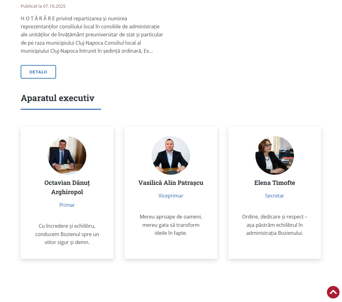 Pentru administrațiile publice, soluția aduce o eficiență reală în activitatea zilnică: reducerea birocrației și a costurilor operaționale, prin automatizarea completă a proceselor administrative; creșterea gradului de satisfacție al cetățenilor, prin accesibilitate 24/7 și transparență în comunicare; gestionare centralizată a modulelor funcționale (programări, cereri, sesizări etc.), cu control diferențiat al accesului; integrare facilă cu sistemele existente, fără întreruperi sau pierderi de date; respectarea celor mai stricte norme de securitate, inclusiv criptare SSL, backup periodic și audit complet; imagine profesională, modernă și digitală, aliniată cu direcțiile europene privind administrația digitală.