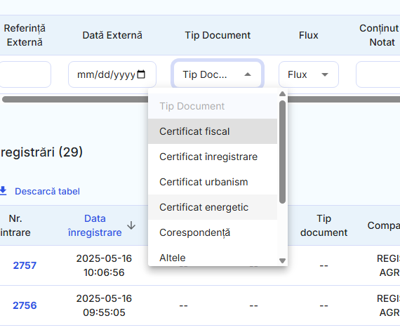 Prin această soluție, toate intrările și ieșirile sunt înregistrate digital, cu dată, oră, utilizator și tip de document. Fiecare fișier poate fi atașat, sortat, clasificat și filtrat, iar accesul este controlat strict prin drepturi stabilite pe roluri (ex: secretariat, arhivă, conducere). Administratorii pot urmări rapid orice modificare prin jurnalul de schimbări, iar documentele pot fi exportate automat sau la cerere în format PDF, Excel sau XML.