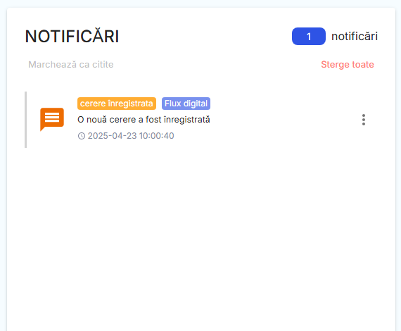 Flux Digital este o platformă modulară și personalizabilă dedicată instituțiilor publice și organizațiilor care își doresc o administrare modernă, transparentă și eficientă a proceselor interne. Fie că este vorba despre aprobări, solicitări, validări sau notificări, toate fluxurile pot fi configurate, automatizate și monitorizate în timp real.