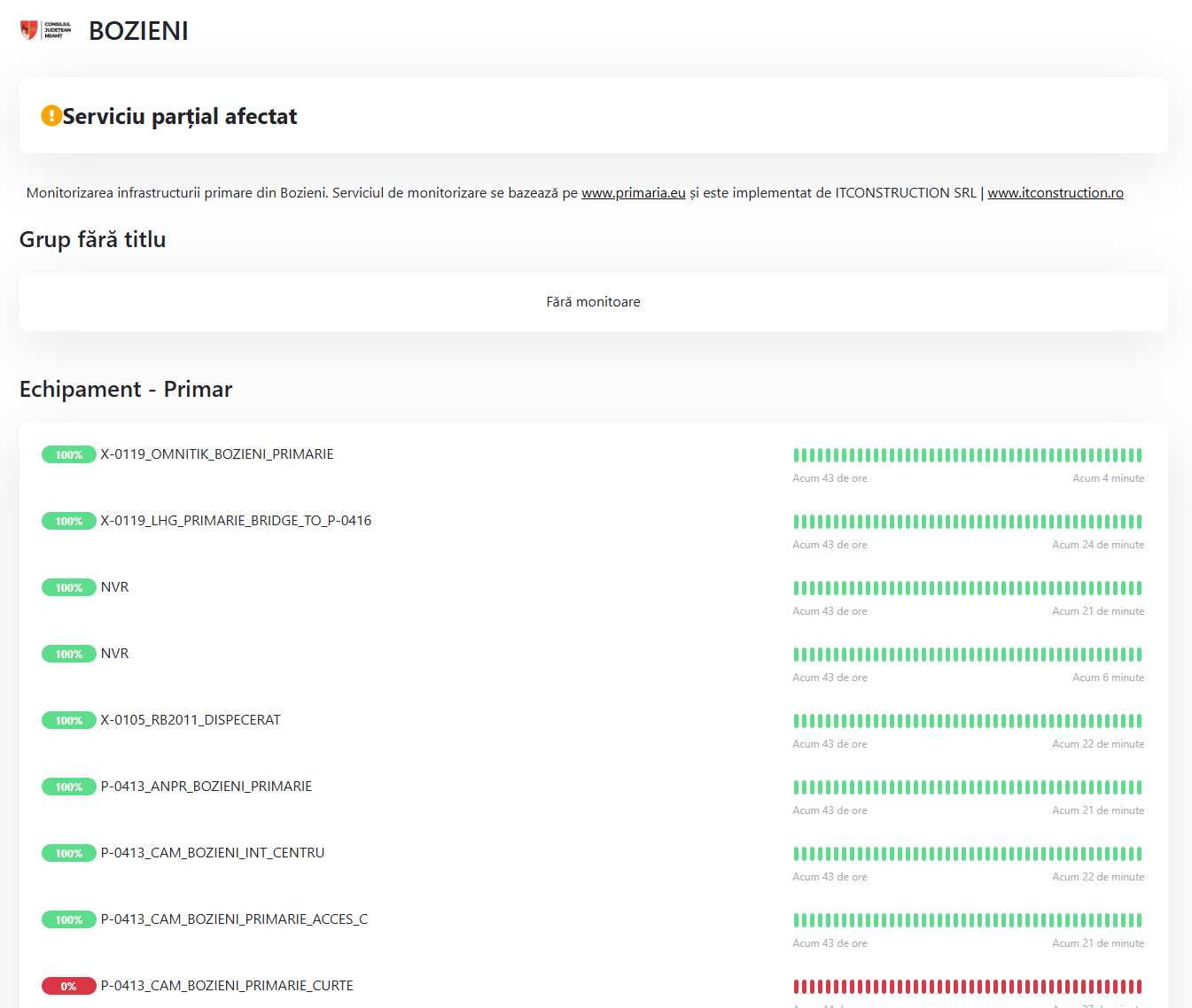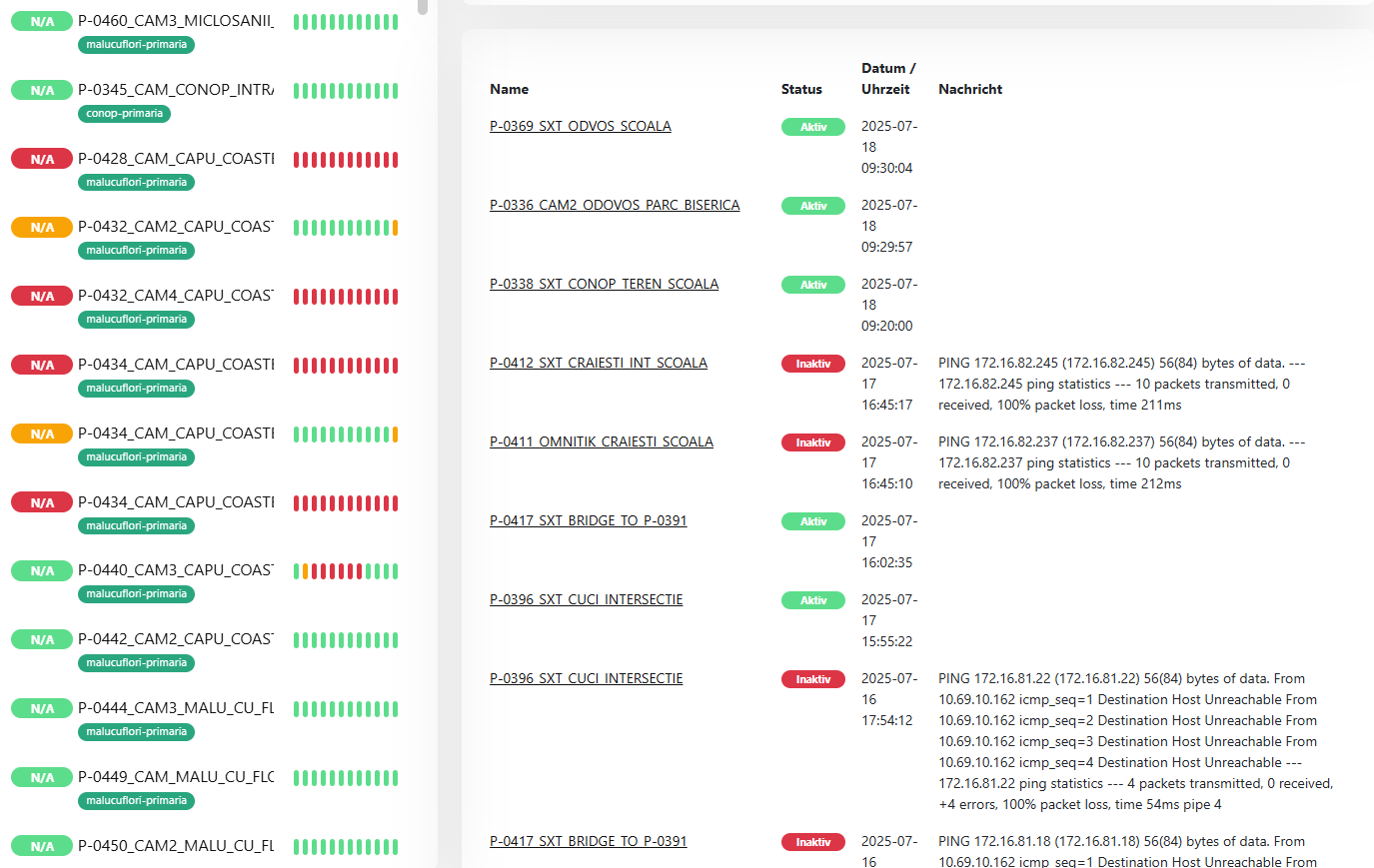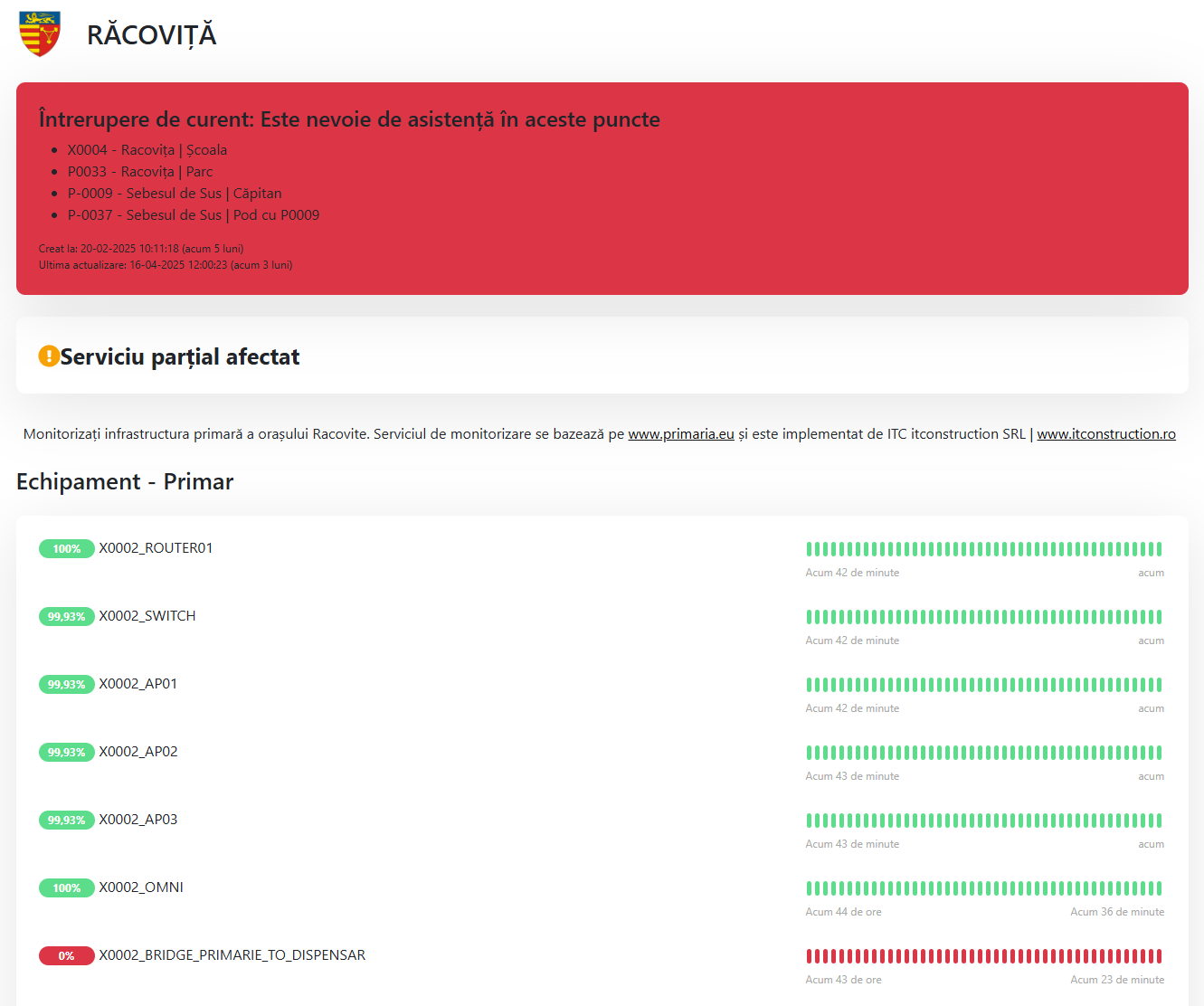asigură vizualizarea în timp real a stării de funcționare, identificând tipurile de dispozitive deconectate, denumirea și locația acestora. Sistemul monitorizează constant