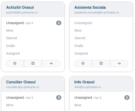O singura adresa de e-mail poate fi folosita de toate departamentele, permitand acces simultan, organizare eficienta a mesajelor primite si coordonare rapida a solicitarilor. Sistemul functioneaza ca un hub comun, unde fiecare departament vede si proceseaza cererile fara blocaje si fara duplicari de informatii.